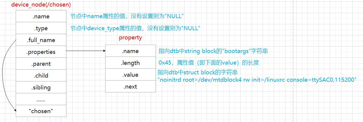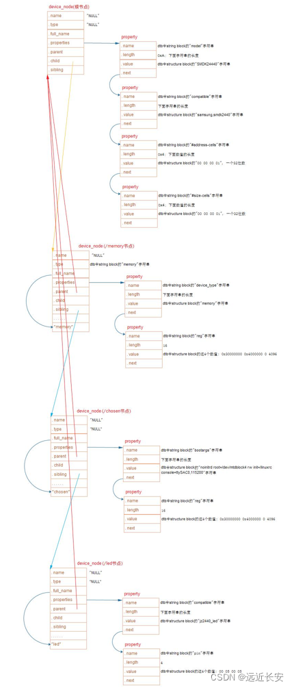 通过这两个结构体,可以比较容易的感受到dtb文件是怎么转换为device_node结构体的。