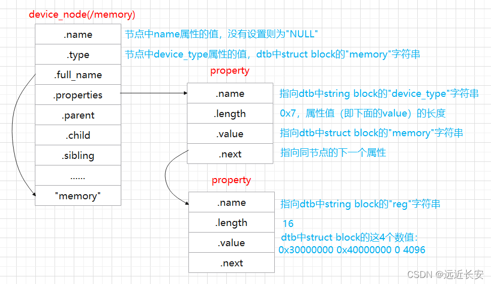 建立设备树的时候,会依次获取设备节点,然后依次获取这个设备节点里面的属性,分配空间。