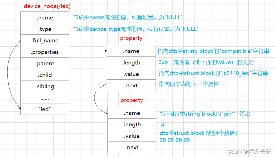 struct property *next; // property指针,可以指向该节点的下一个属性