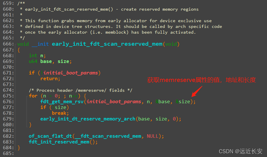 调用early_init_fdt_scan_reserved_mem函数,在该函数中会先获取dtb文件中的memreserve信息(fdt_get_mem_rsv),然后通过early_init_dt_reserve_memory_arch->memblock_reserve将内存保留下来。