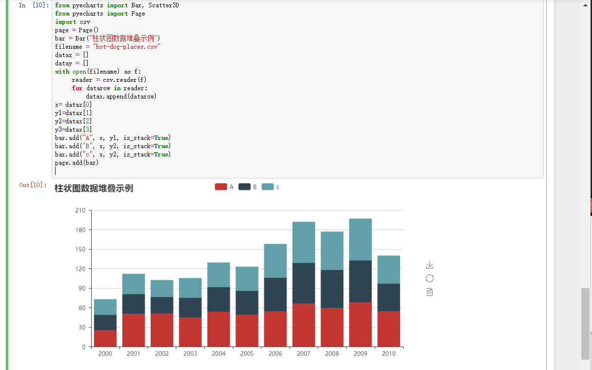 bar = Bar(“柱状图数据堆叠示例”)