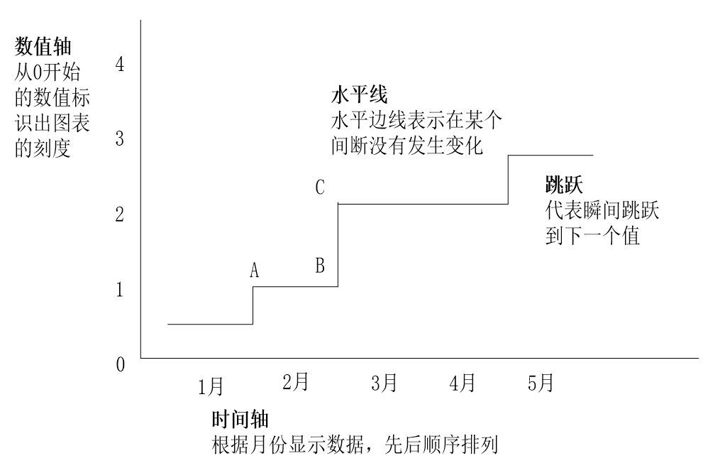 定义:阶梯图是曲线保持在同一个值,直到发生变化,直接跳跃到下一个值。