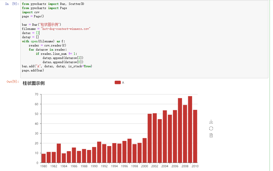 page = Page()bar = Bar(“柱状图示例”)