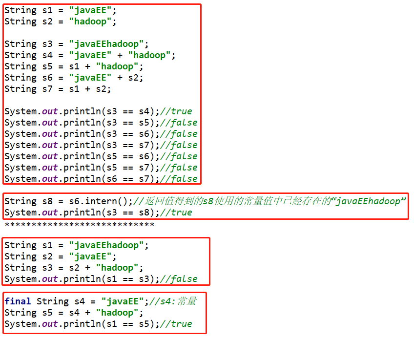5.字符串常量池中是不会存储相同内容(使用String类的equals()比较,返回true)的字符串的。
