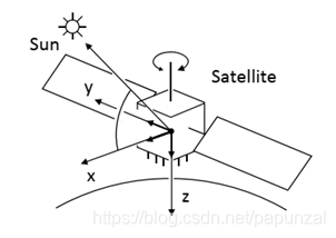 卫星天线相位中心模型的示意图如图2所示,与接收机天线类似,PCO和PCV参数通常由IGS以ANTEX文件格式给出。其中卫星天线的PCO在卫星坐标系下给出,如图3所示,其坐标原点位于卫星的质心CoM。而PCV参数依然由临近角度的线性插值得到。