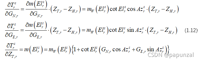 在PPP中,将对流层延迟分为干分量和湿分量两部分,且与接收机到卫星的仰角相关。将天顶方向对流层分量以及北向和东向的对流层梯度