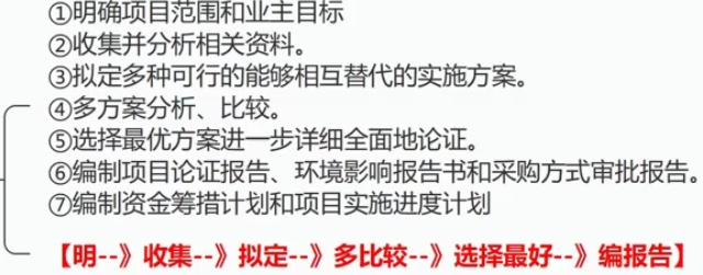 项目论证是一个连续的过程,它包括问题的提出、制定目标、拟定方案、分析评价、最后从多种可行的方案中选出一种比较理想的最佳方案,供投资者决策 - 主要步骤