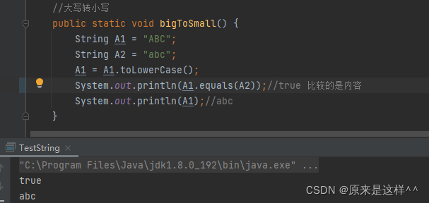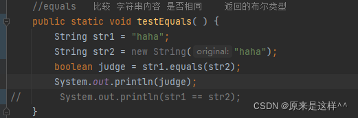 🚓二: equals 比较的是字符串的内容,返回值是 布尔类型