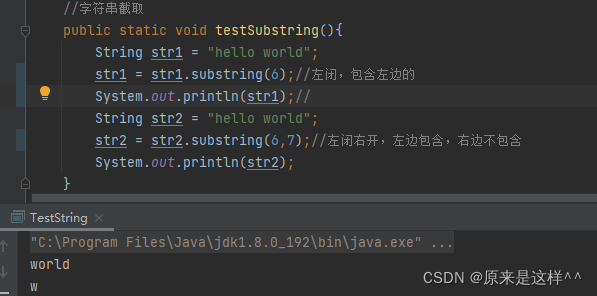 🚒十:字符串截断 string str = str.substring() 返回值是被截取完的一个新的对象(字符串)