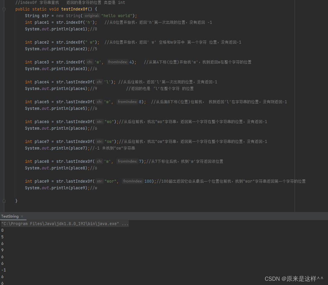 🚙五:int n = i ndexOf() 查找字符或字符串,返回值是int类型 返回的是要查找字符或字符串第一次出现的位置