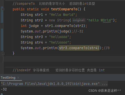 🚕三: str1.compareTo(str2) 比较大小,返回的是int类型