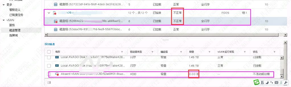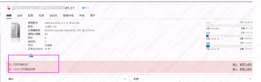 3、磁盘所在主机的告警信息“主机存储状态”,“VSAN主机磁盘出错”