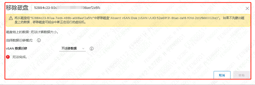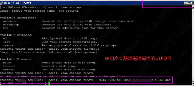6、使用命令迁移对应的磁盘。esxcli vsan storage remove –uuid ****