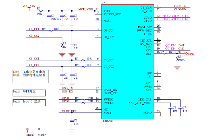那么问题来了,究竟是什么芯片让它实现诸多功能?我们从PCB板上了解到采用了一颗LDR6282的PD协议芯片。