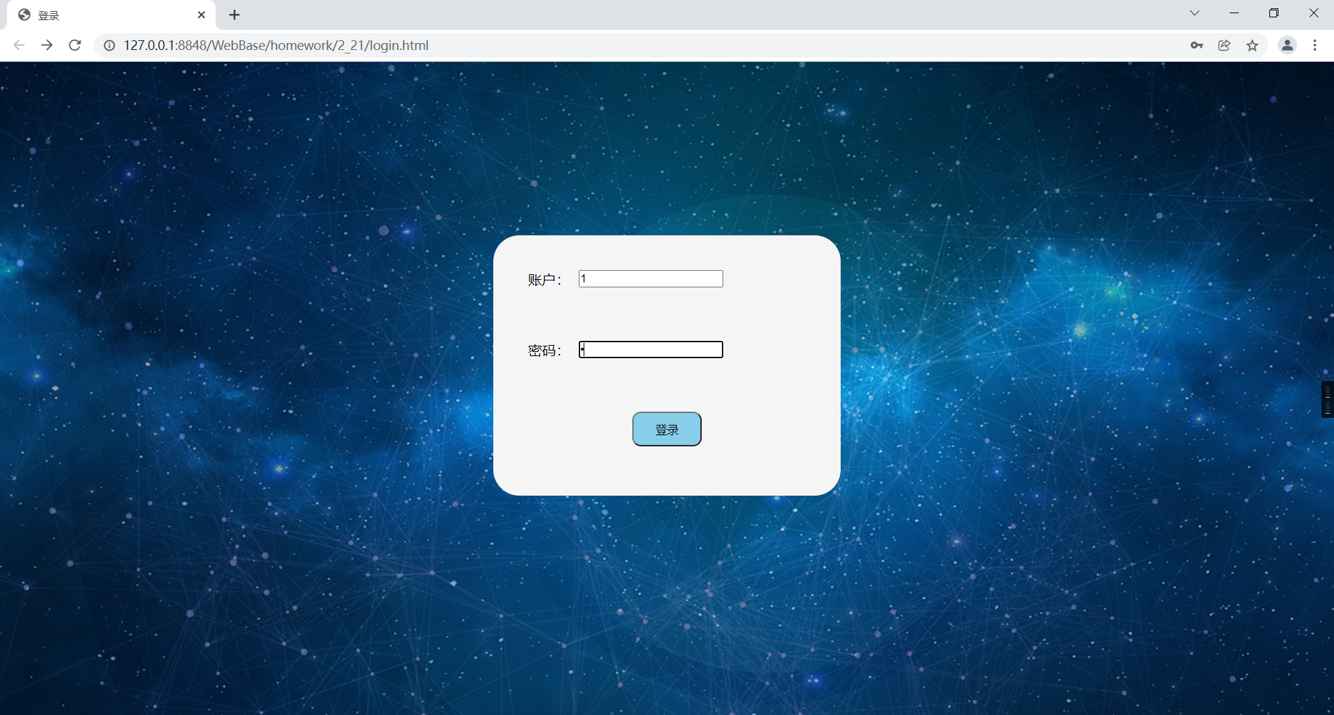制作一个前端登录界面,制作一个简单的web服务器,连接数据库,验证从前端界面提交的表单数据。