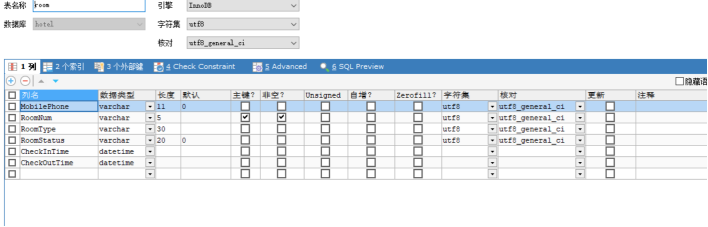 (6) 客房类型: 房间号(外键键),客房图片编码格式,客房类型名称(主键)。