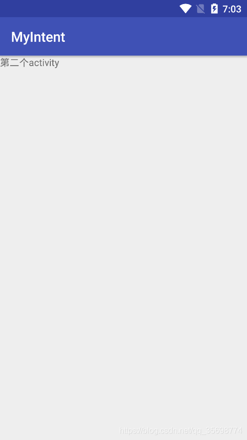 如上如所示 点击显示启动,启动第二个activity,跳转到第二个activity界面。代码如下: