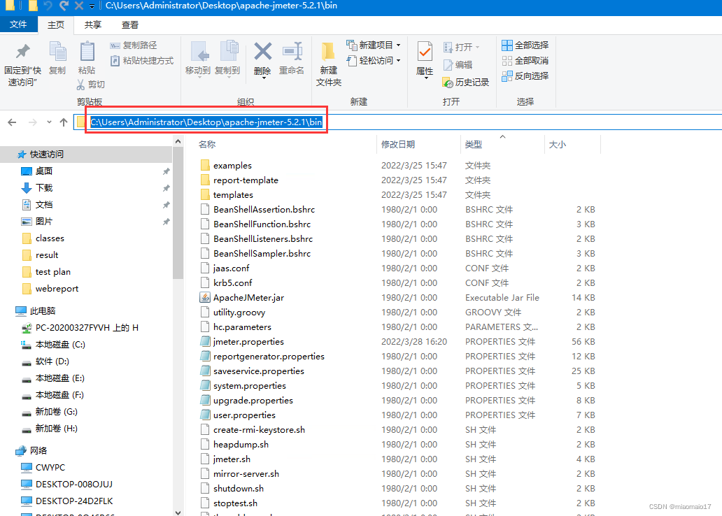 测试计划文件、测试结果和web报告保存路径均放在了F盘下: