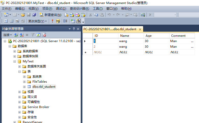 cmd.CommandText = "insert into tbl_student(Name,Age,Comment) output inserted.ID values('wang',30,'Man')";
