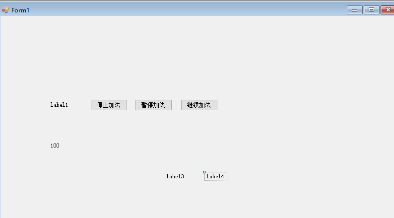 界面业务说明,label1是加法计算,分别有3个功能,对label1停止加法,暂停加法,继续加法。100 是减法计算