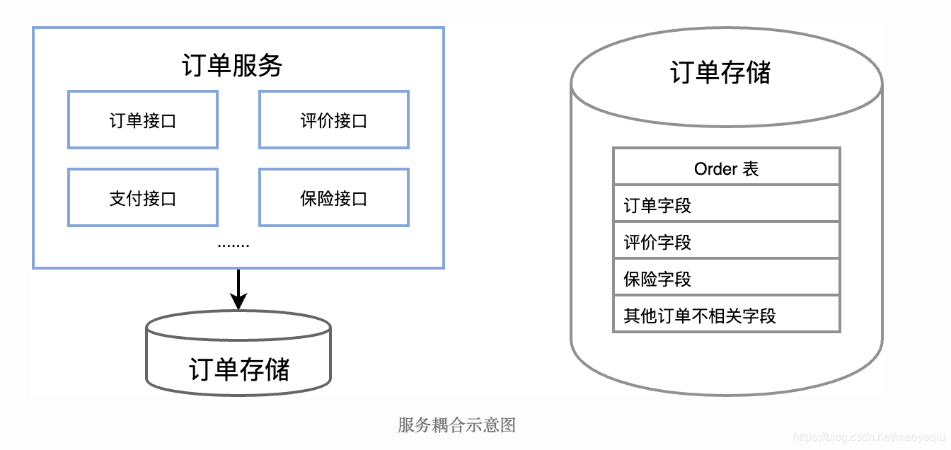 订单服务接口中提供了查询、创建订单相关的接口,也提供了订单评价、支付、保险的接口。同时我们的表也是一个订单大表,包含了非常多字段。在我们维护代码时,牵一发而动全身,很可能只是想改下评价相关的功能,却影响到了创单核心路径。虽然我们可以通过测试保证功能完备性,但当我们在订单领域有大量需求同时并行开发时,改动重叠、恶性循环、疲于奔命修改各种问题。