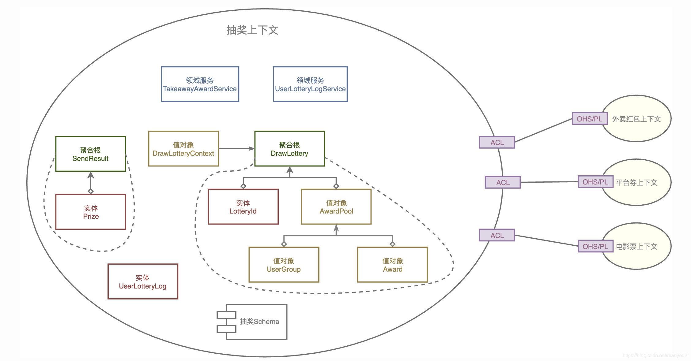 首先,抽奖上下文作为整个领域的核心,承担着用户抽奖的核心业务,抽奖中包含了奖品和用户群体的概念。
