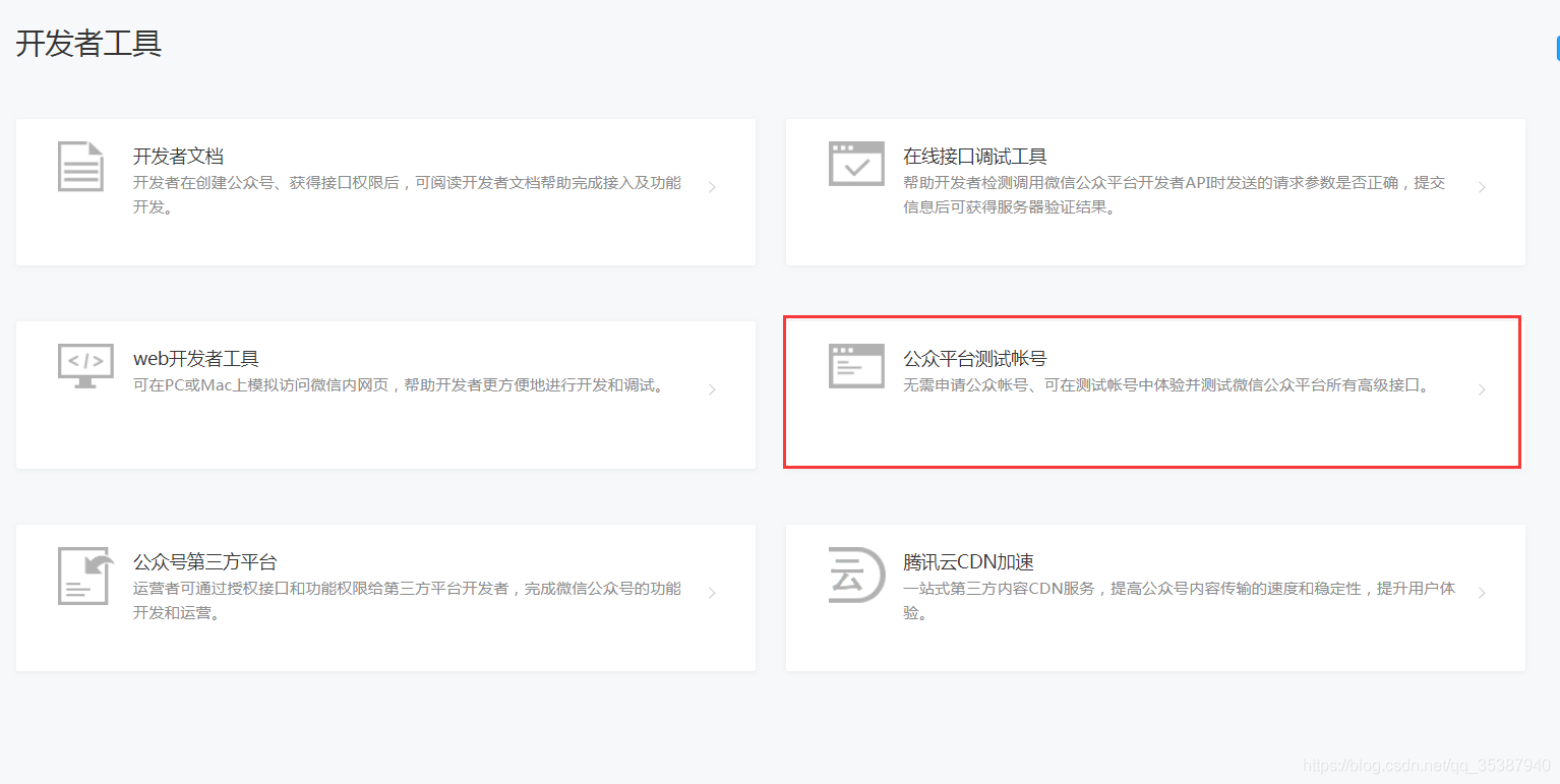 进入到公众平台测试帐号界面,