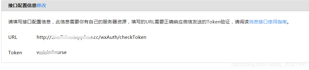 1.跟微信碰头的 验证Token地址以及Token参数值