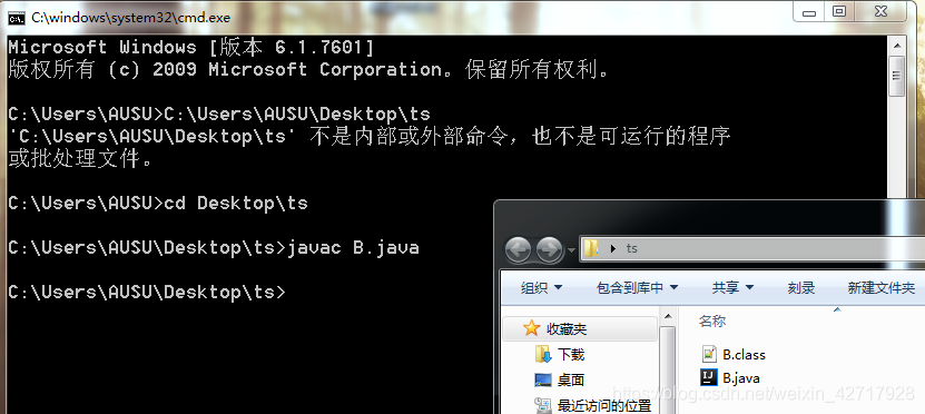 假如我的B.java源文件在C:\Users\AUSU\Desktop\ts里面