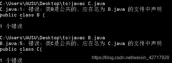 (2)如果出现两个公共类,而名字是B.java或者是C.java