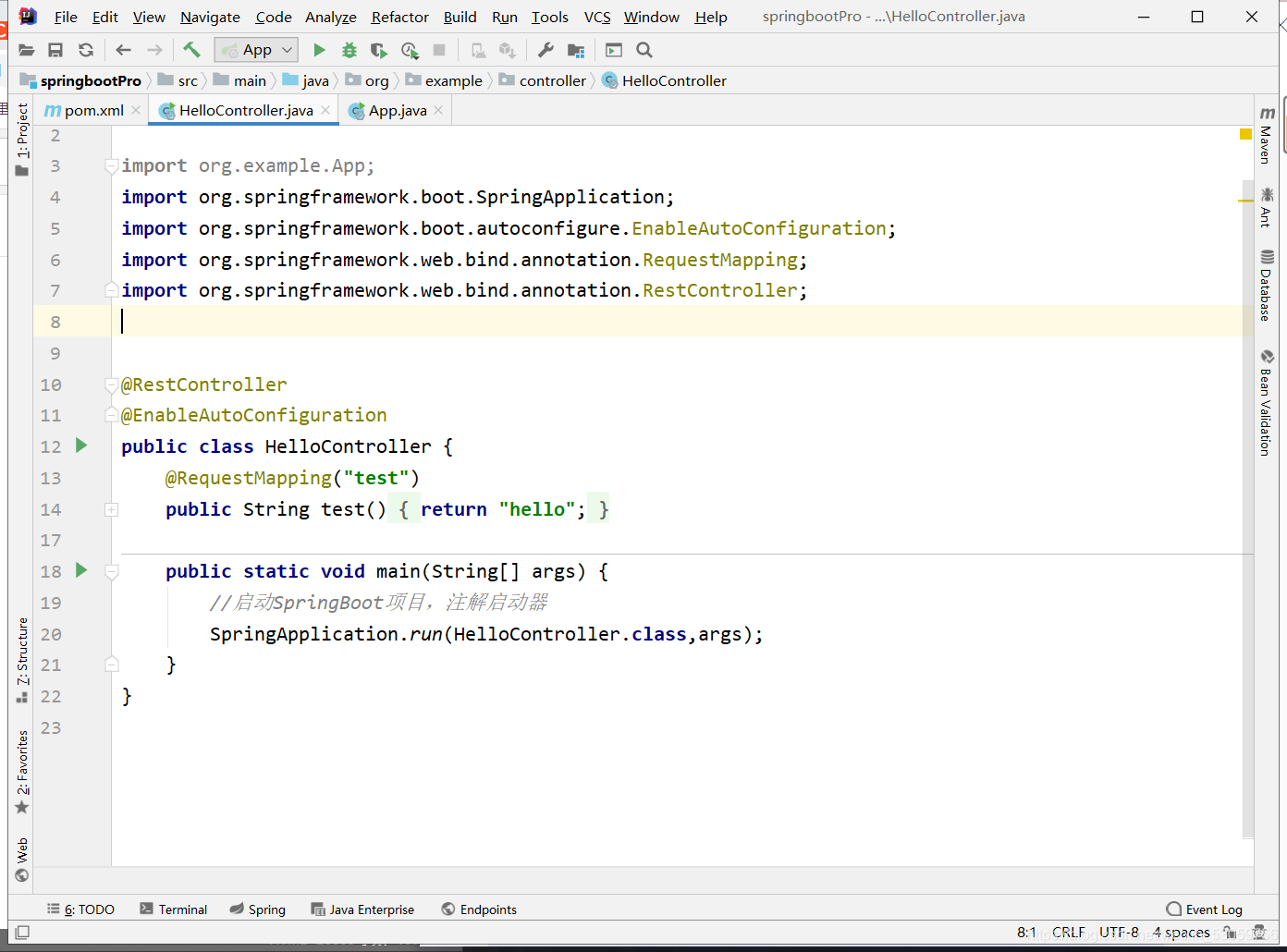使用@SpringBootApplication注解,主方法运行:SpringApplication.run(类名.class,args)