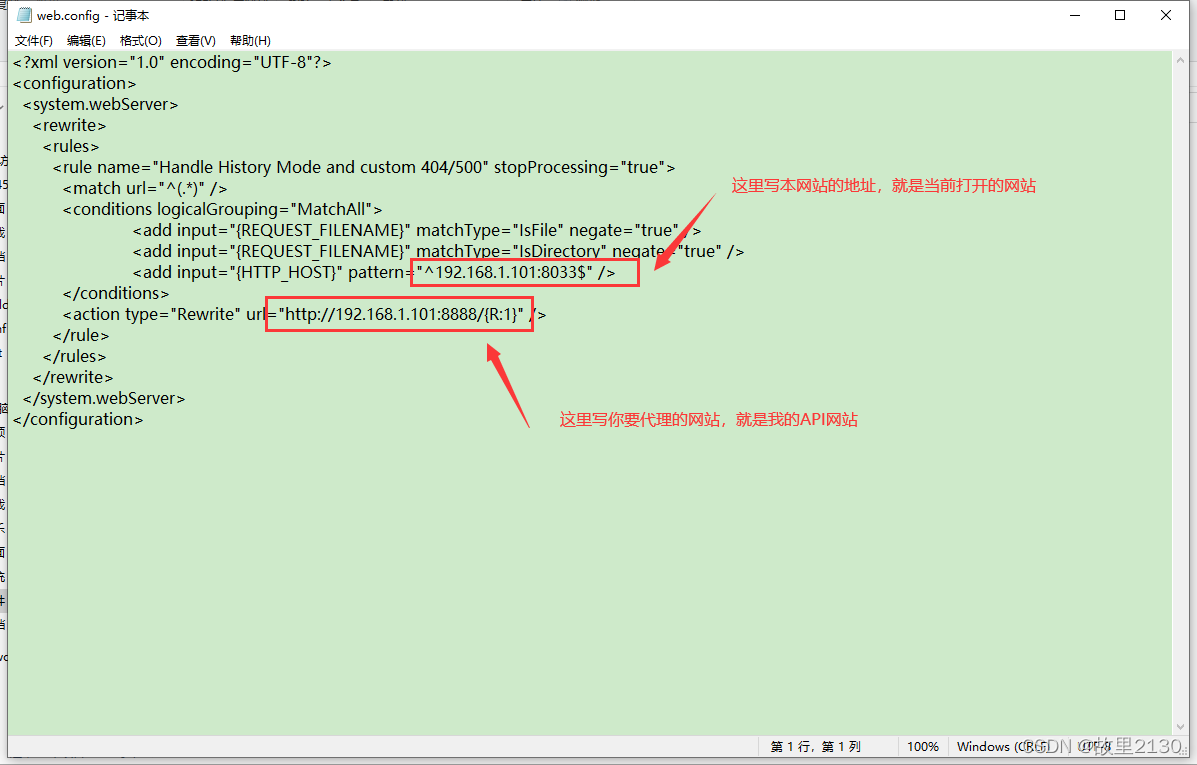重写URL 写入:http://192.168.1.101:8888/{R:1},点应用。