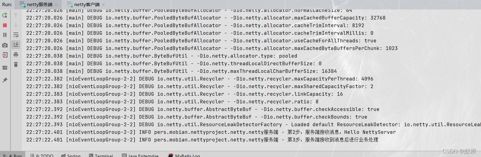 服务端代码格式和客户端差不多,最开始创建的Bootstrap对象变成了ServerBootstrap。同样的,核心逻辑在initChannel方法里面。