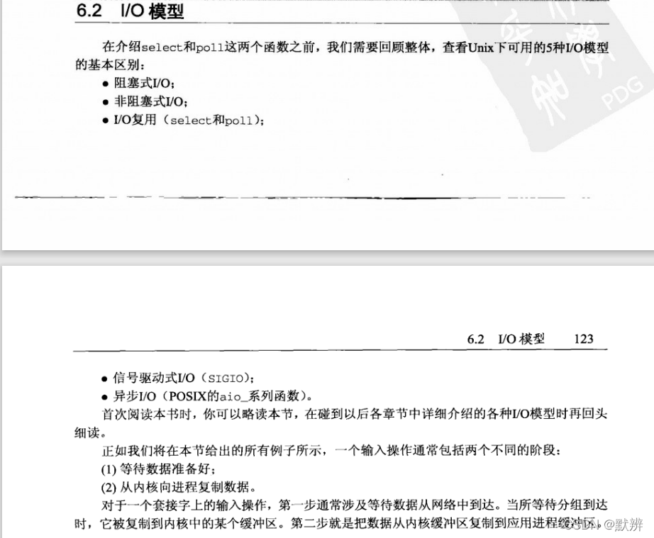 在《UNIX网络编程卷1》的第六章对IO模型给BIO、NIO、多路复用、信号驱动IO、异步IO五种IO模型给出了如下的定义: