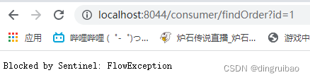 启动微服务,请求接口http://localhost:8044/consumer/findOrder?id=1 ,如下图触发了流控规则