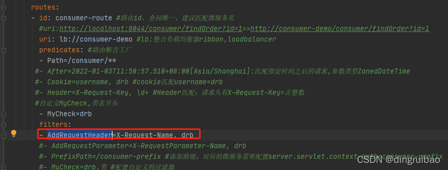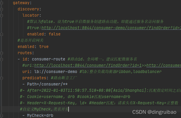 断言:Java8的断言函数,SpringCloud Gateway中的断言函数类型是Spring5.0框架中的ServerWebExchange。断言函数允许开发者定义匹配Http request中的任何信息,比如请求头和参数等。