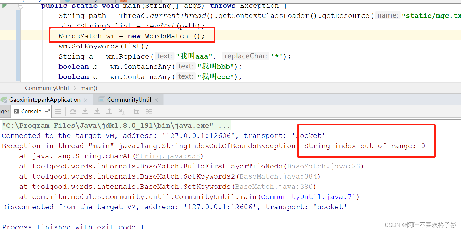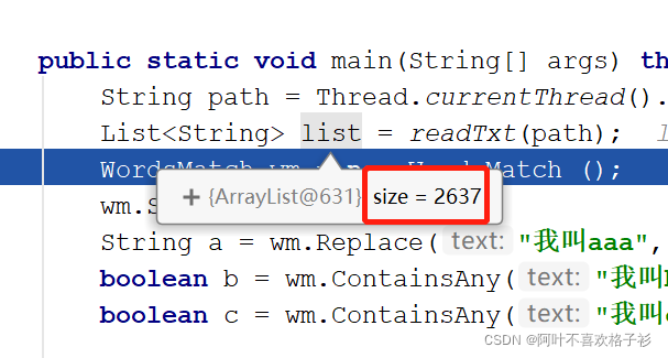 回答一下上边提到的另一个WordsMatch类为什么不用,因为我在开发过程中发现当你list长度过长的时候会报错,长度一般的话也能正常使用,WordsMatch类中的方法和StringMatch中的方法一模一样。