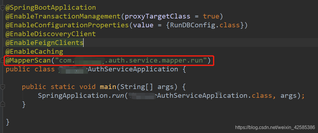 2. 在 主类(启动类)上添加 @MapperScan注解,并指定dao层接口的包路径,在编译之后会自动生成相应的接口实现类。