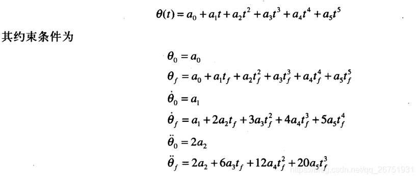 对于一次从静止点到静止点的运动,约束条件方程左边的值我们是知道的。一般情况下初始点的速度与加速度为0.即: