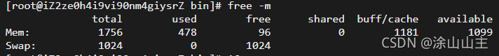 4. 96MB表示未被分配的内存;shared表示共享内存;1181MB表示系统分配但未被使用的buffers数量;1099MB表示系统分配但未被使用的available数量。