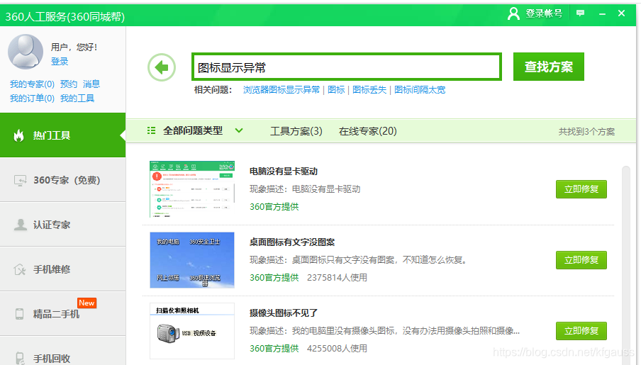 1.360安全卫士,人工服务,图标显示异常….立即修复.但是我的只可以修复一部分.
