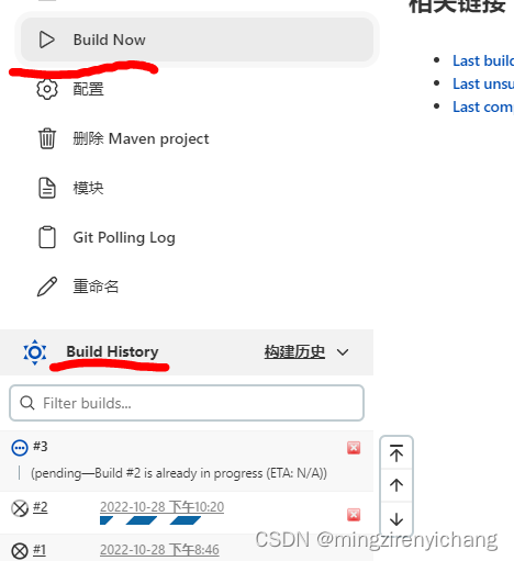 开始构建,第一次构建时间可能久,build history 可以看到进程