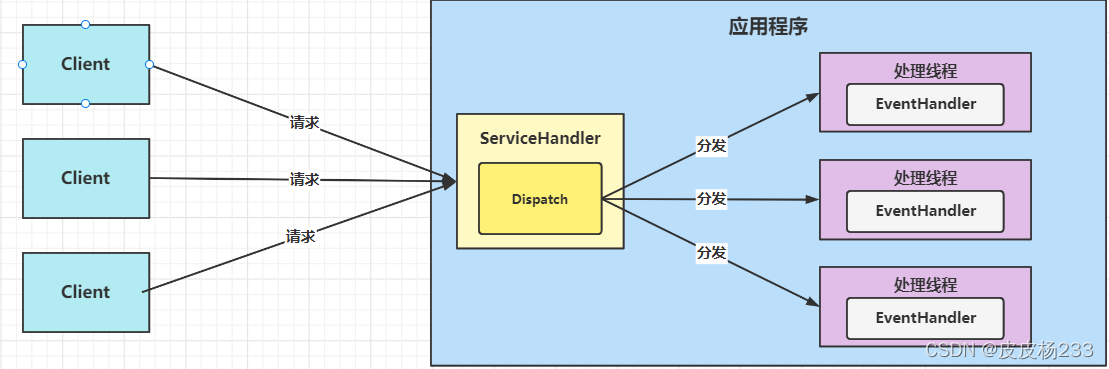- 收到事件,Dispatch 根据事件类型,分发给某个线程