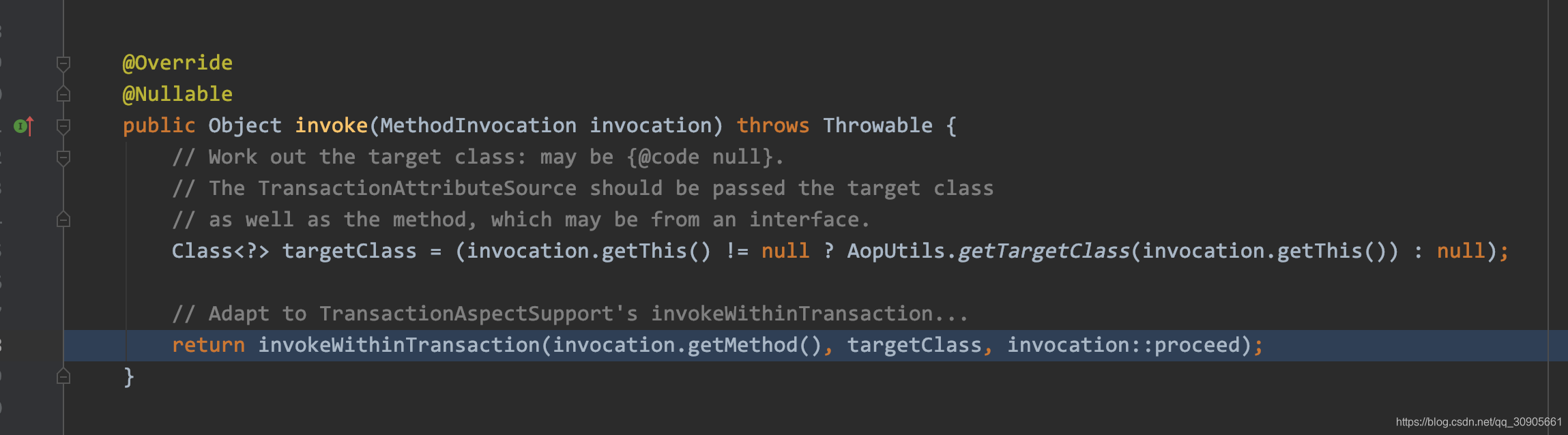 protected Object invokeWithinTransaction(Method method, @Nullable Class<?> targetClass,
