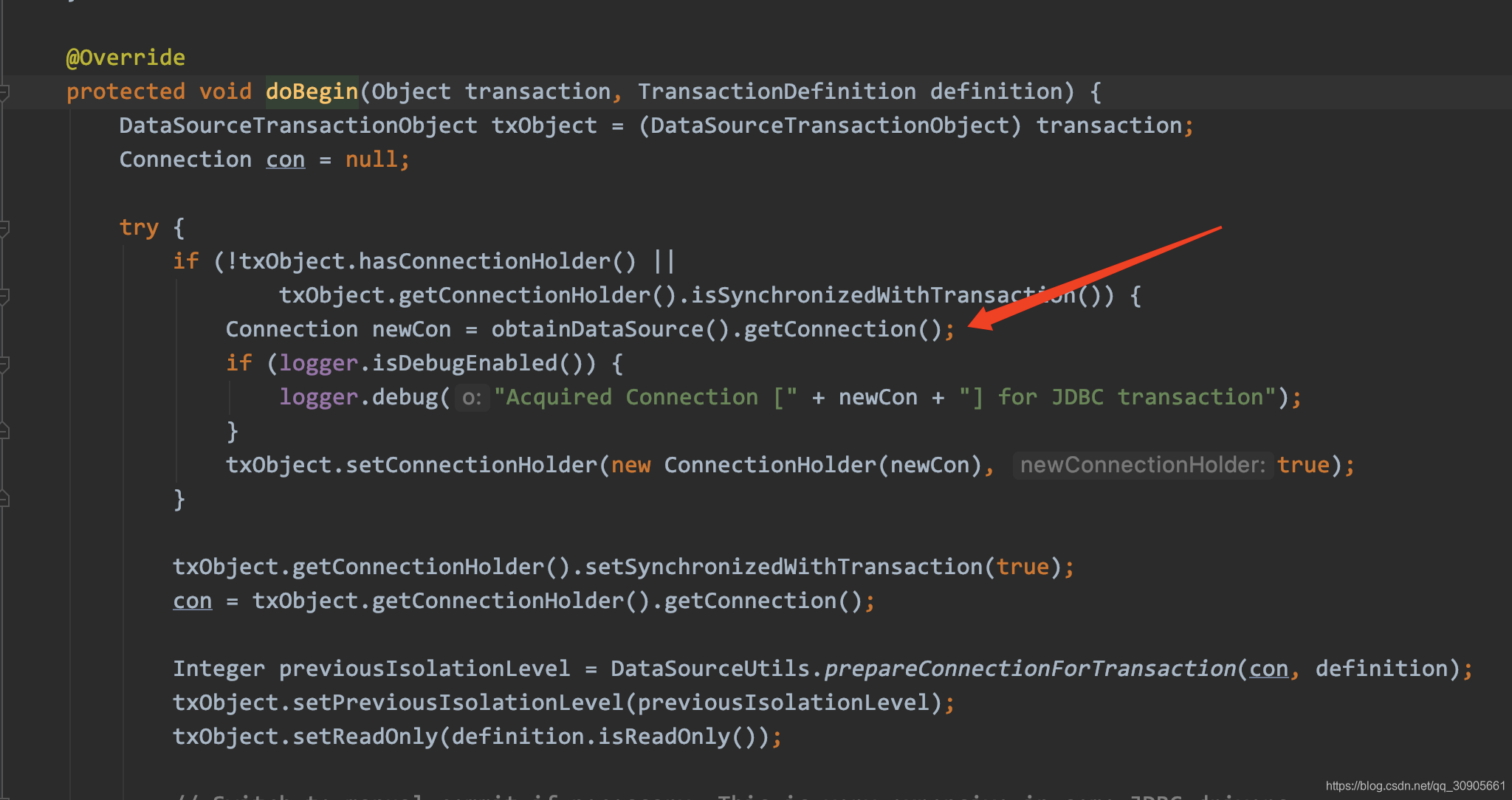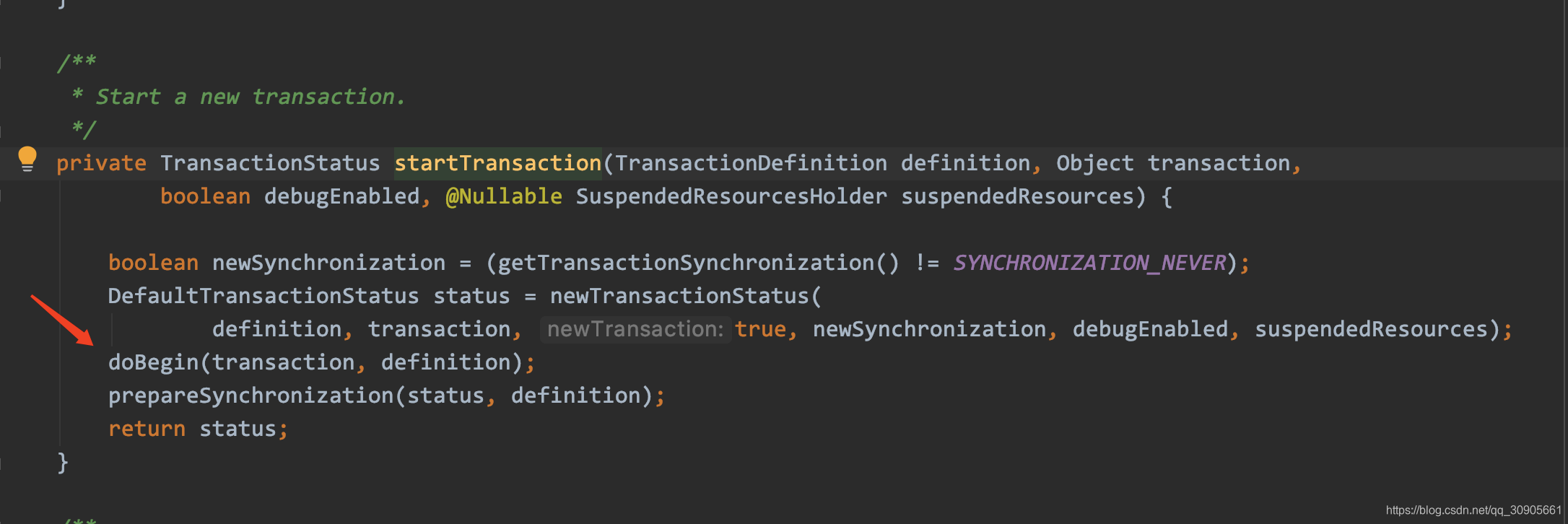 //创建transaction 实际调用 transaction.getTransaction(definition)
