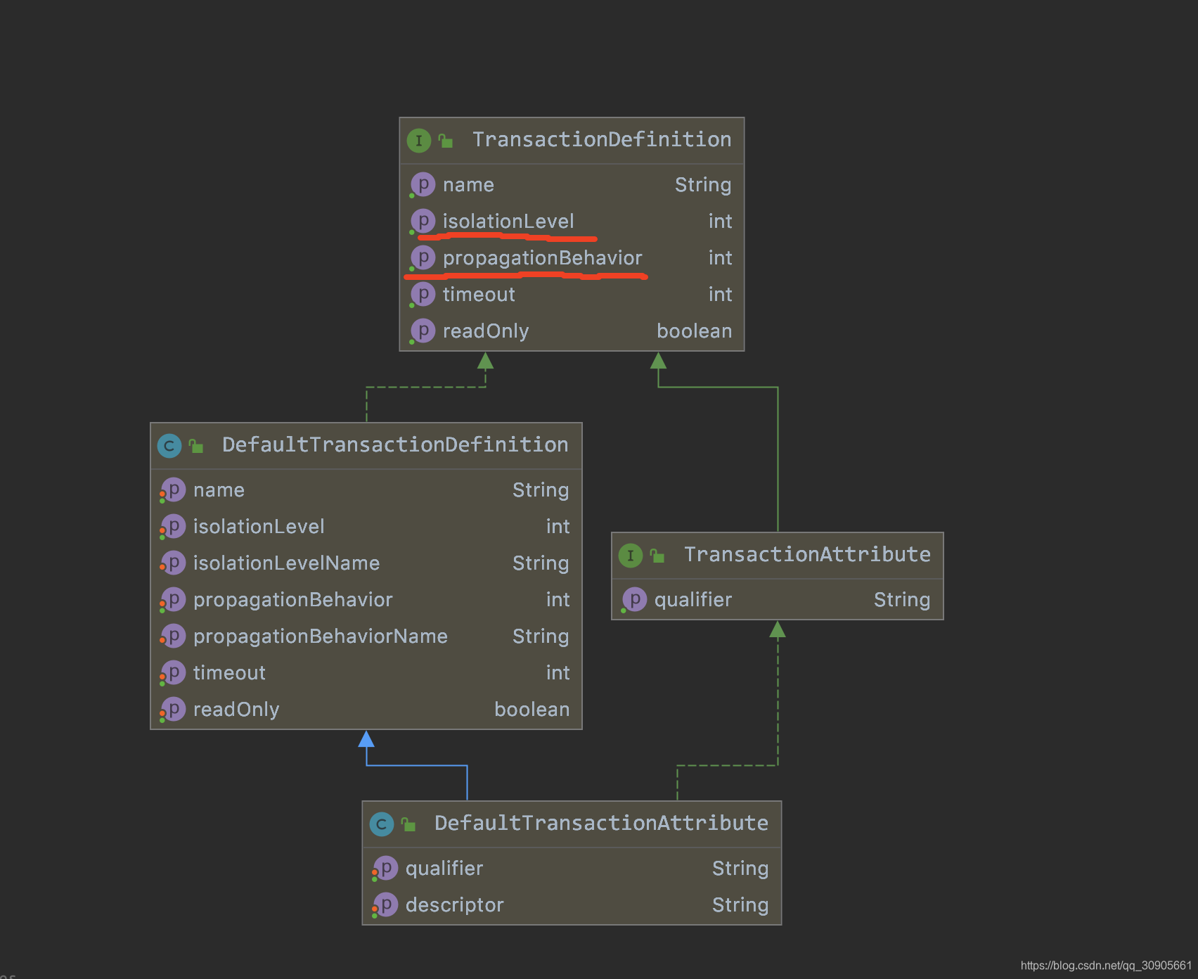 TransactionDefinition TransactionAttribute 主要属性 isolationLevel propagationBehavior