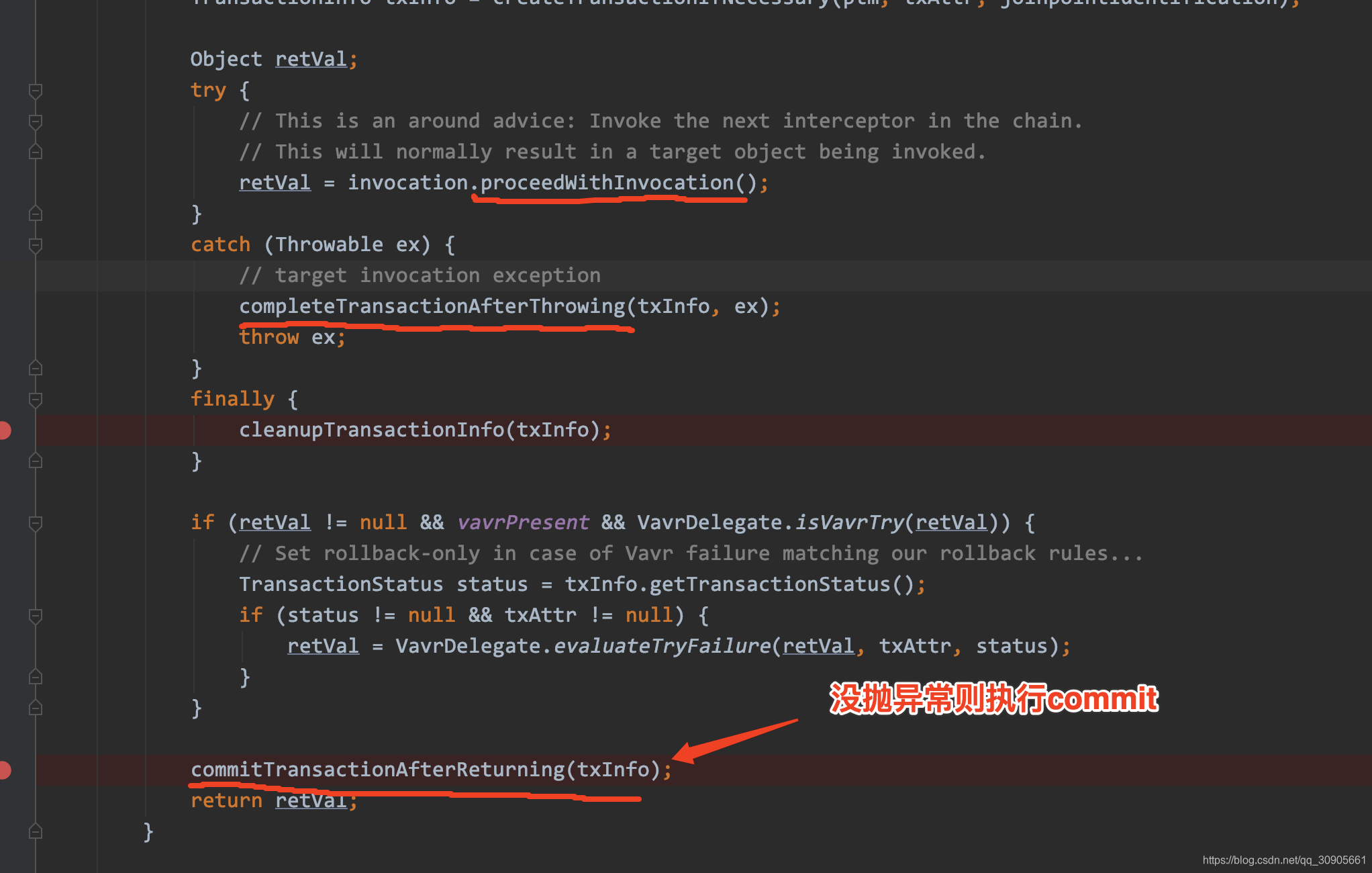 TransactionAspectSupport.commitTransactionAfterReturning 没异常则执行commit