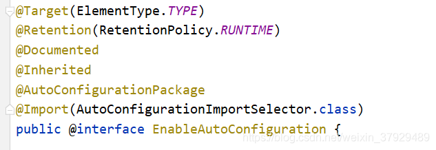 将 AutoConfigurationImportSelector这个类导入到spring容器中, AutoConfigurationImportSelector可以帮助springboot应用将所有符合条件的@Configuration配置 都加载到当前SpringBoot创建并使用的IoC容器(ApplicationContext)中